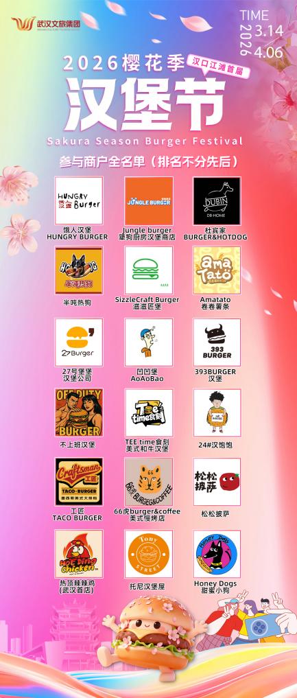 为丰富市民春日文旅生活,激活城市消费活力,3月14日至4月6日,“汉口江滩樱花汉堡节”将在汉口江滩三阳广场热闹启幕,以樱花为景、美食为媒,打造春日文旅消费盛宴,市民游客可轻松解锁赏樱、品美食的春日快乐!